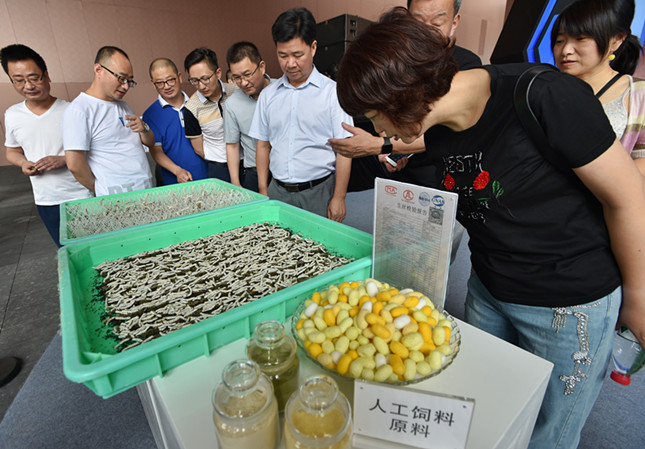 如今,在恒温恒湿无菌的生产车间里,蚕宝宝被置于饲养盘中,盘底铺有玉米粉、番薯粉、桑叶粉等合成的人工饲料,供蚕食用。蚕的整个生命周期都将在这里完成。“人工饲料工厂化养蚕技术打破了季节性强,只能吃桑叶的传统养蚕产茧方式,蚕可以一年四季365天全天候采茧,茧丝品质达国标5A级以上”。金耀介绍,过去1万吨鲜茧需要10万蚕农才能生产,如今在养蚕工厂只需要200名工人就能完成。同时由于蚕吃人工饲料长大,全国桑园面积可节约96%,大量节约集约土地资源。同时,在可控环境下采用高密度常年饲养,养蚕用房利用率比农村传统桑叶育提高500倍以上,实现每天收获蚕茧,直接缫丝,节能降耗,对传统茧丝生产方式进行了颠覆性转型升级。