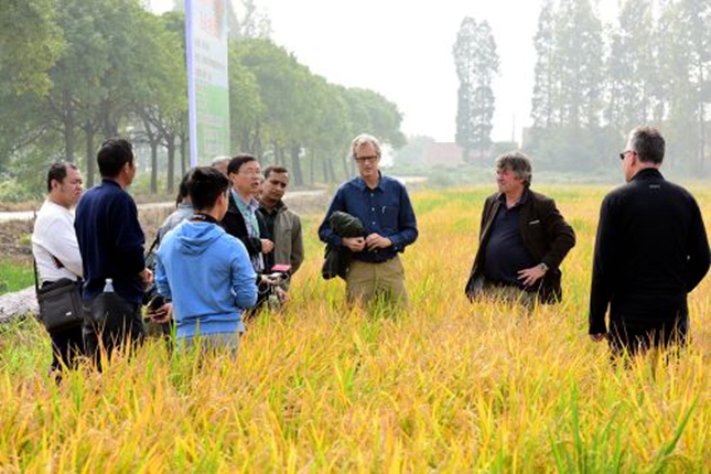 ▲国外水稻专家慕名参观荆州三湖农场绿色超级水稻