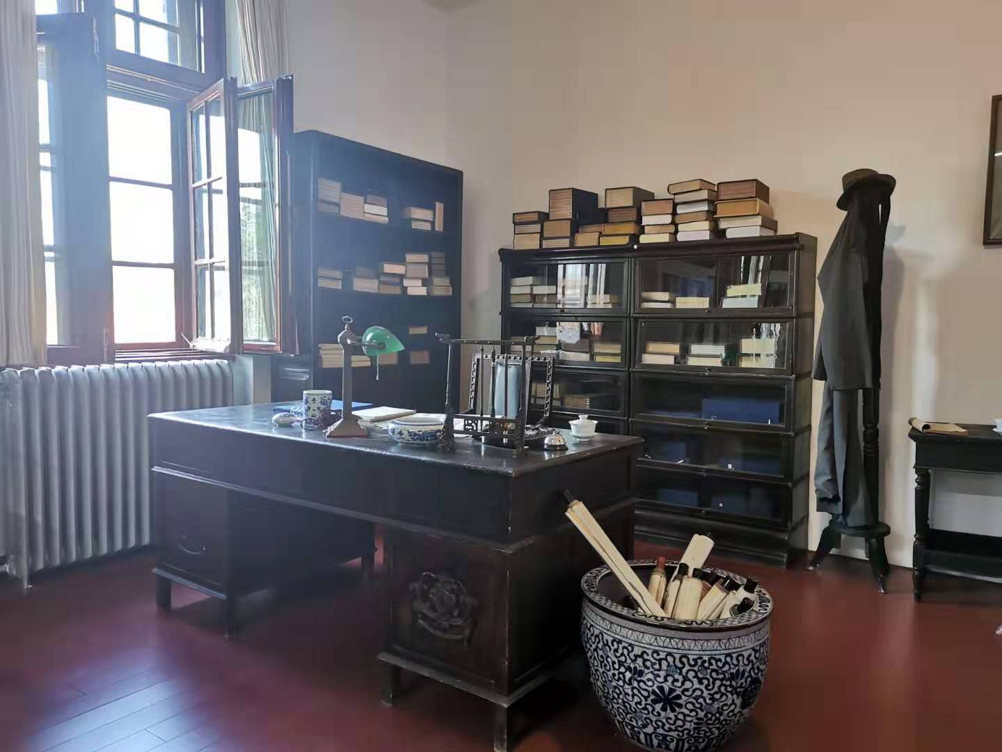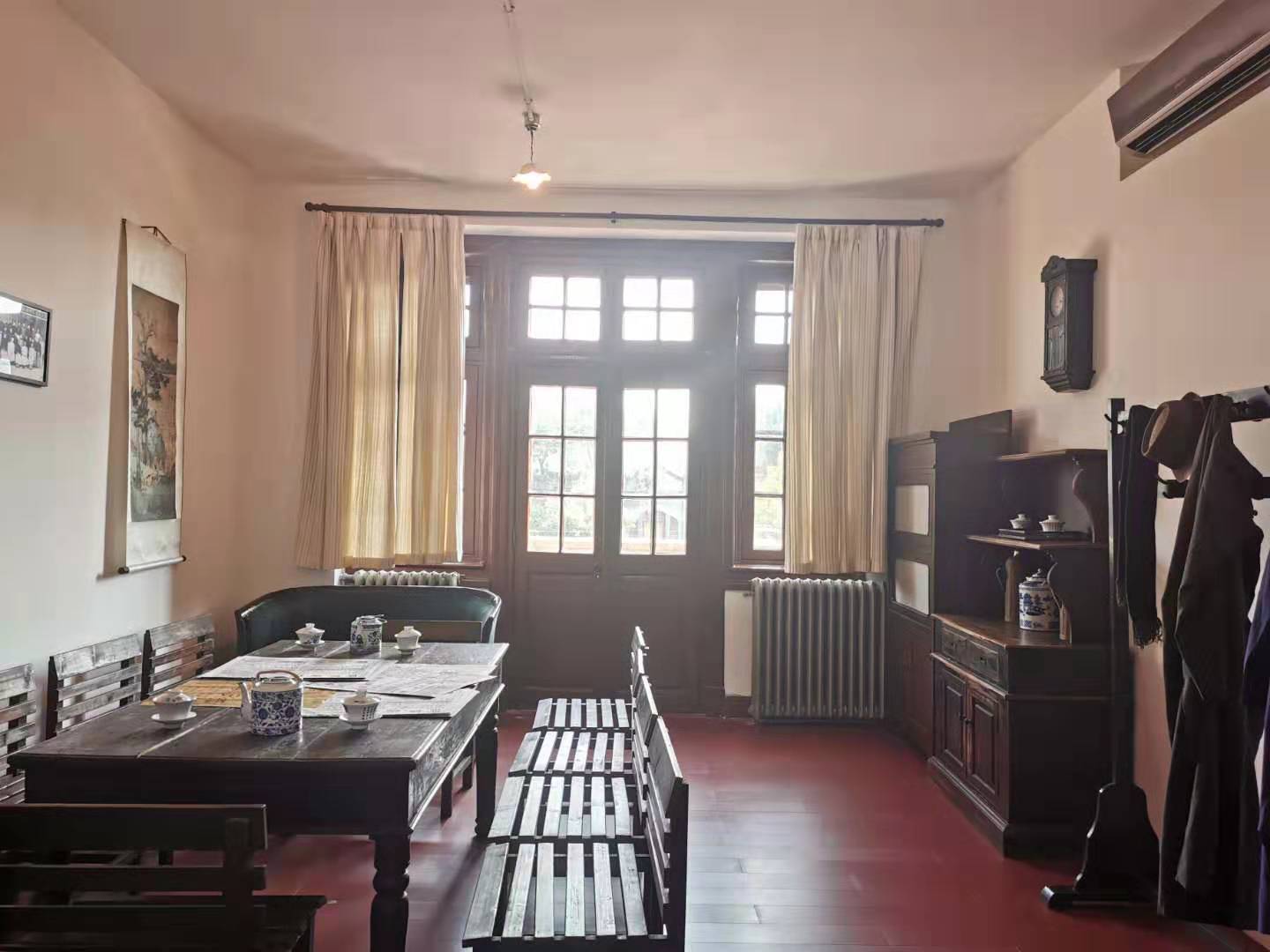 二层还向观众开放了复原后的文科教员休息室、校长办公室等。老式的四脚桌上摆着青瓷茶壶茶杯,衣架上挂着帽子和围巾。虽然环境朴素,但这里却孕育了新青年的进步思想和文化。据北大学生罗家伦回忆,当时北大有两个著名的师生聚谈场所,一个是一楼图书馆主任室“饱无堂”,另一个就是二楼国文教员休息室“群言堂”。“这两个地方,无师生之别,大家一起辩论。”沈从文说,以红楼为中心,大小几十个公寓形成了非常活泼的文化学科空气。他特别肯定这样一种开放式校园,促进了文学发展,酝酿了社会动力。