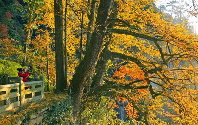 12000岁最古老的树。在天目山国家级自然保护区开山老殿下方,海拔960米处的悬崖峭壁上,生长着一株中生代孑遗植物 ——天目山野银杏。这是杭州最古老的树,也被称为“五世同堂”,老、壮、青、少、幼共济一堂,向上望是茂密的枝叶,向下望是无尽的密林。每年晚秋,叶色金黄,秋意浓郁。