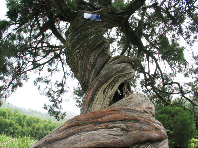 2010岁最美丽的树圆柏。在临安区太湖源镇上阳村2010岁的圆柏,被誉为“醉美的树”,圆柏整株向西倾斜。据清乾隆《临安县志》记载,此树系梁代栽种,树龄已有千年。经测,树高8米,胸围198厘米,平均冠幅5米。整个树干直到树梢纹理呈螺旋状扭转,向西的那条大枝,先是平伸,后又微翘,活像一把太师椅,令人叫绝。