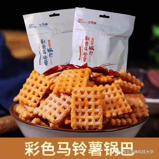 2018年10月,杜好田用彩色马铃薯做成了“第一代”彩色马铃薯锅巴,在学校官方新媒体平台的帮助下,他的锅巴不仅走红校园,成为西农人的特色食品,也迎来了两万多袋的订单量,为师生校友们所熟知。