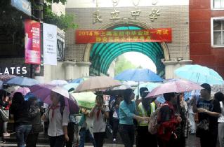 上海2014年初中毕业统一学业考试昨天在倾盆大雨中开考。各考点都提前开放考场,为考生提供人性化服务。中考语文作文题为《这里也有乐趣》。