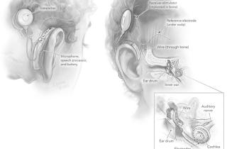我们已知,人能听见是依靠听觉系统将声音转译为大脑可读懂的信息。在此过程中,中耳会先听到声音,产生震动。这种声波会很快传递到内耳,也就是耳蜗所在地。这个如同蜗牛壳的内耳结构上,布满上万个毛细胞,当声波呼啸而过时,这些毛细胞被压弯。