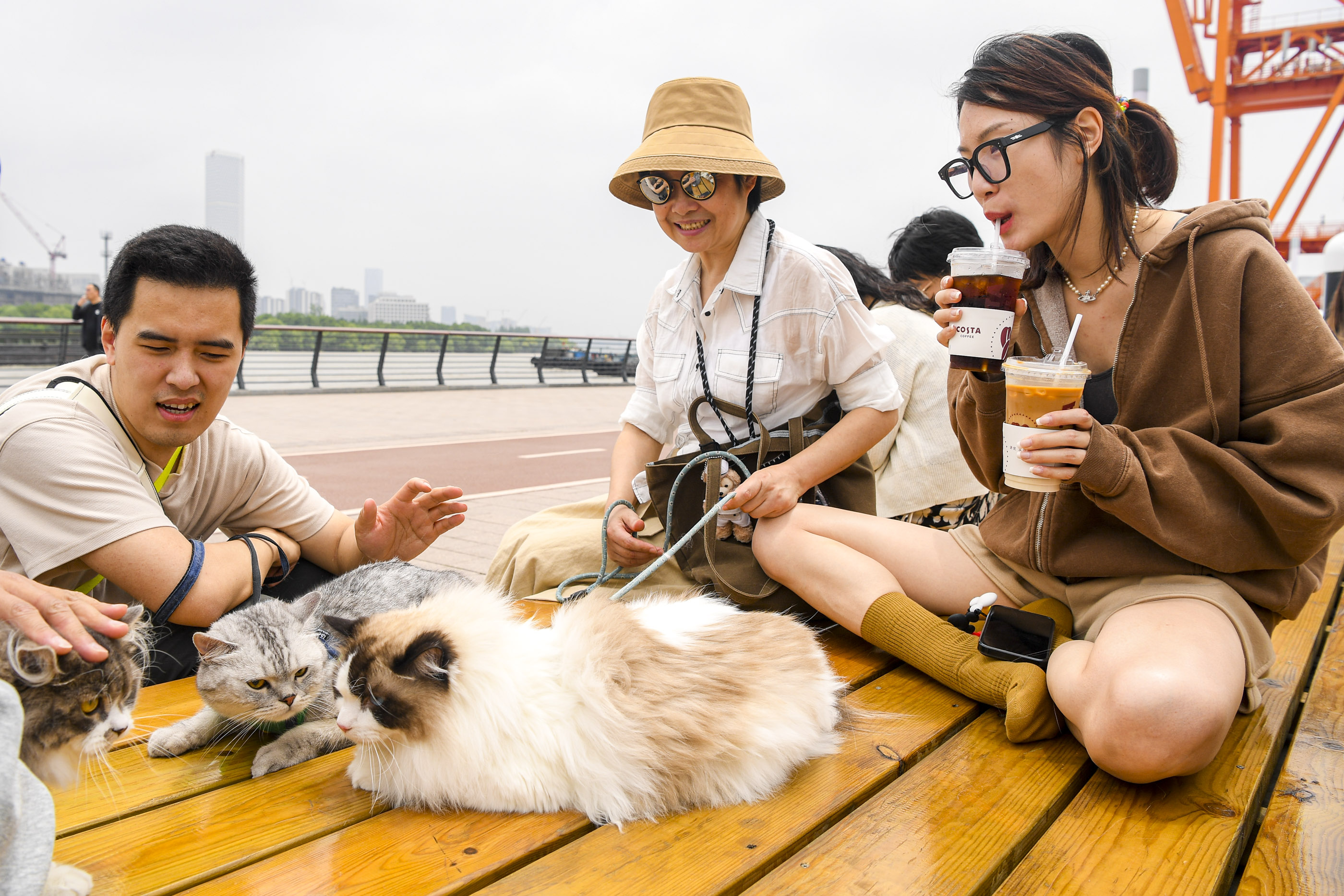 ▲咖啡文化已融入市民的生活日常,年轻人带着爱宠在咖啡生活节上与友人小聚。陈龙 摄