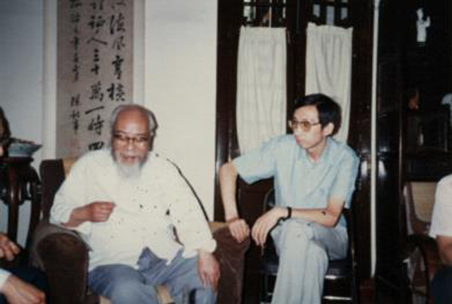 1986年,陈来与冯友兰(左)在冯家共话中国哲学