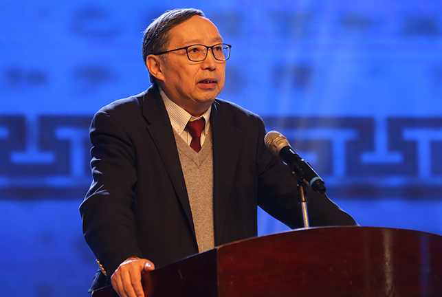 2016年11月27日,在孔子研究院儒学会堂举办的“儒家文明与全面建成小康社会”专题讲座上,陈来作演讲