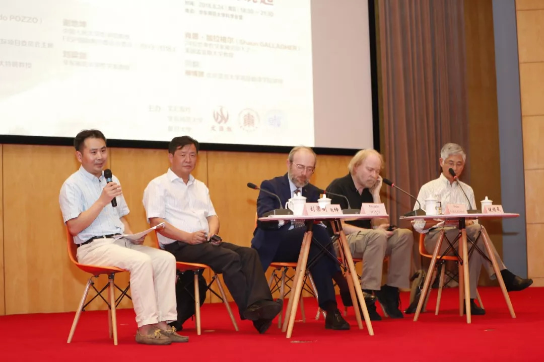 在8月13-20日举办的第24届世界哲学大会上,来自121个国家的哲学家和哲学爱好者们汇聚北京,在哲学比较与对话中演奏着人类多样性思维的交响曲。昨晚(8月24日),在世哲会闭幕4天后,第124期文汇讲堂从大会上请来了5位国内外知名嘉宾——国际哲学学院(IIP)院士、国际哲学团体联合会(FISP)国际项目委员会主席里卡尔多·波佐(Ricardo POZZO),中国人民大学哲学院杰出教授、FISP国际执行委员会委员谢地坤 ,美国孟菲斯大学教授肖恩·加拉格尔(Shaun GALLAGHER),美国格兰谷州立大学教授、北师大特聘教授倪培民,华东师范大学哲学系教授刘梁剑共话《全球视域中的中国哲学 ——从第24届世界哲学大会说起》。华东师大哲学系教授、党委书记童世骏任点评嘉宾。