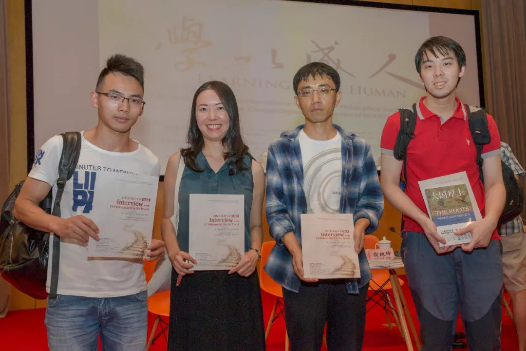 ▲优秀提问者合影,奖品为由文汇讲堂提供的“24位世界哲学家访谈录”双语册,最佳提问者再获讲堂最新哲学演讲、访谈新书《大国厚土》,女性优秀提问者特获FISP女性哲学学会特制的2019年周历