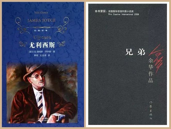 ▲爱尔兰意识流文学作家詹姆斯·乔伊斯(James Joyce)于1922年出版的长篇小说《尤利西斯》(左);余华的著作《兄弟》荣获法国国际信使外国小说奖