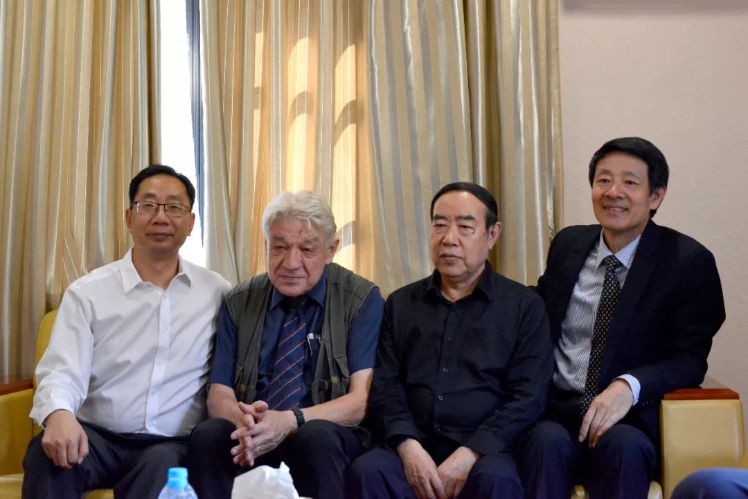 ▲彭青龙、顾彬、贾平凹、陈众议(从左到右)演讲前在会议室交流