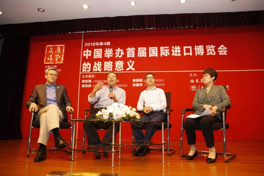 日前,第122期文汇讲堂聚焦“进口博览会”,在《中国举办首届国际进口博览会的战略意义》的主题下,上海国际问题研究院院长陈东晓、中国现代国际关系研究院世界经济研究所原所长陈凤英、上海社科院世界经济研究所原副所长徐明棋、上海市商务委总经济师张国华分别带来了各自的解读。