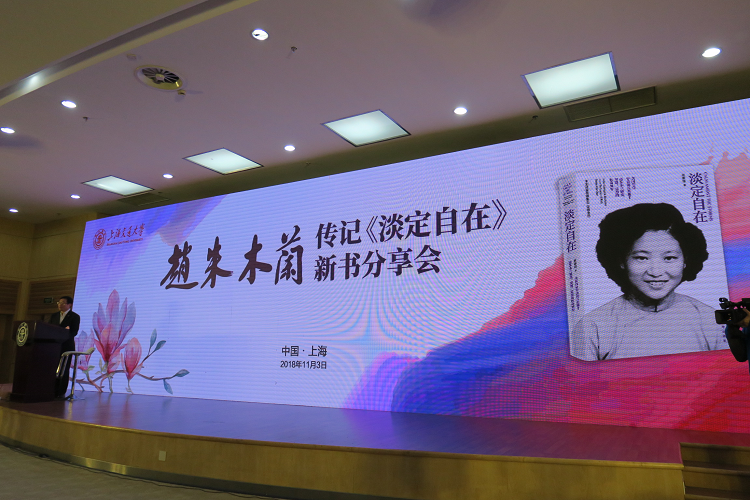 11月初,在上海交大闵行木兰船建大楼,赵锡成、赵安吉再次和师生及部分木兰奖获得者见面,这一次是为了一份浓浓的纪念——丈夫的挚爱、女儿们的挚爱和榜样——赵朱木兰女士的传记《淡定自在》的新书分享。美国交通部长赵小兰女士在美国拍摄的英文视频开场前一直在屏幕上滚动播放。而去年,赵锡成的传记《逆风无畏》在上海交大徐汇校区作为118期文汇讲堂与全市三百多市民做了分享会,那一次,赵小兰也亲自挑了所有的父母亲照片。