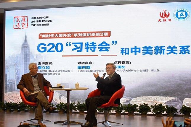 12月2日下午,新时代大国外交"系列演讲第二讲《G20“习特会”和中美新关系格局》开讲,由中国现代国际关系研究院前院长、太和智库高级研究员崔立如主讲,上海国际问题研究院院长陈东晓对话,复旦大学美国问题研究中心研究员宋国友点评。三小时的演讲互动让现场近300位听友颇受启发。今刊发现场互动问答。