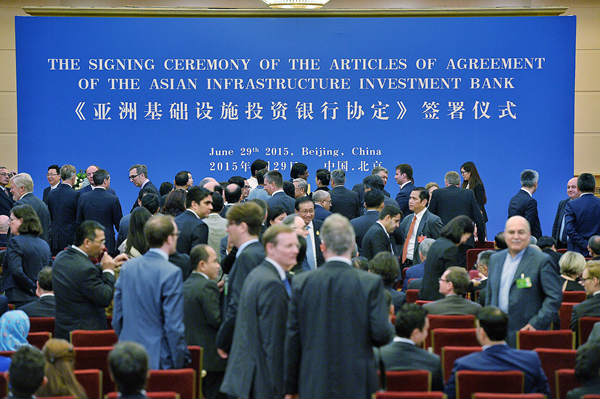 截止2015年3月31日,共有57个国家宣布加入并成为亚投行的创始成员国,其中亚洲域内37个国家,域外20个国家。由于美国未能阻止其欧洲和亚洲的盟国加入,这被广泛认为是中国经济外交的胜利。