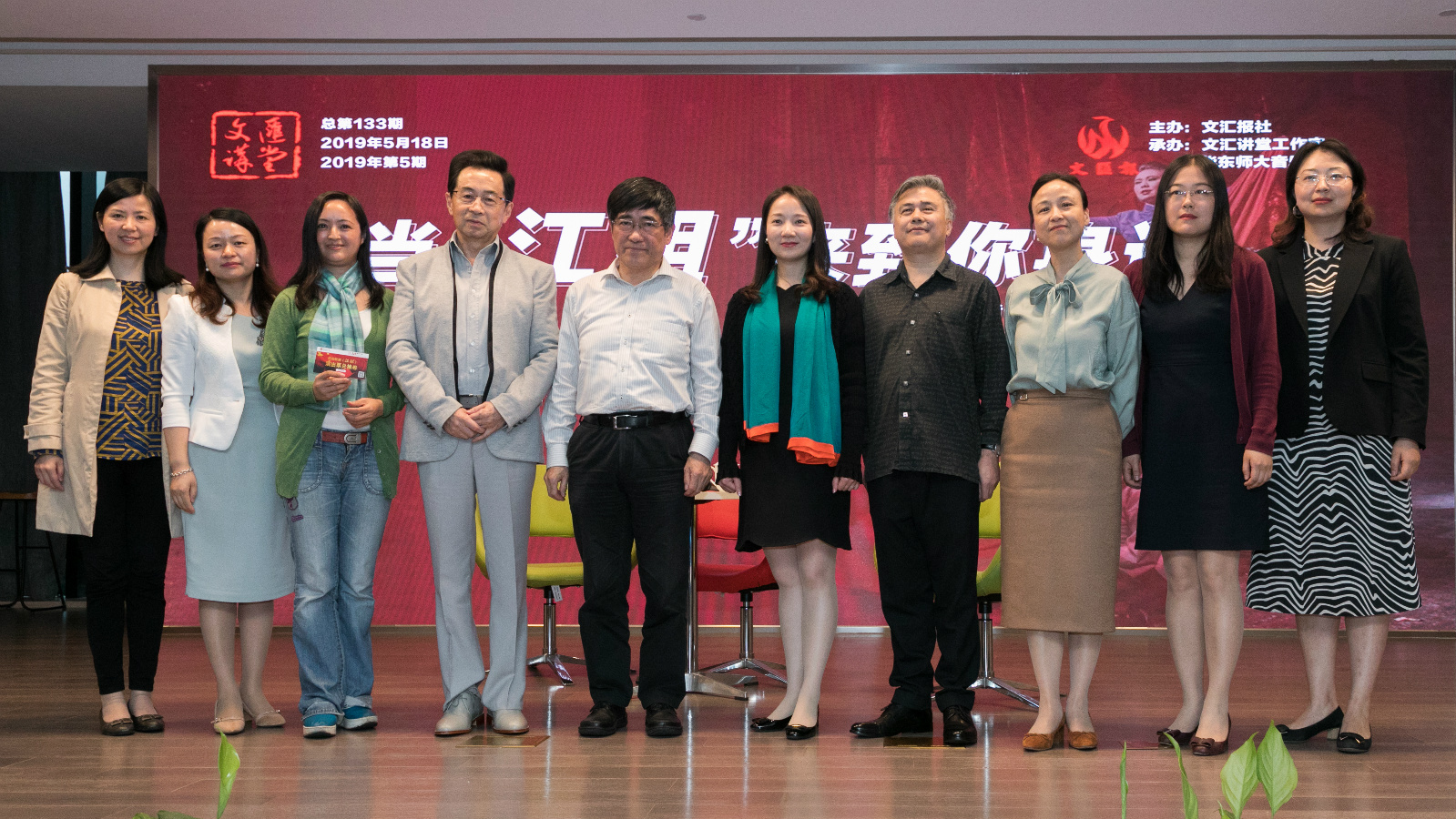 讲堂宾主合影,左起张薇、杨海燕、李念、张国光、童世骏、许洁、李诗原、曹金、郑艳、王周悦