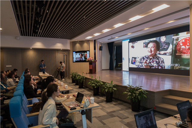 现场听众凝神观赏讲堂制作的预热片《江姐:民族复兴路上的基因密码》