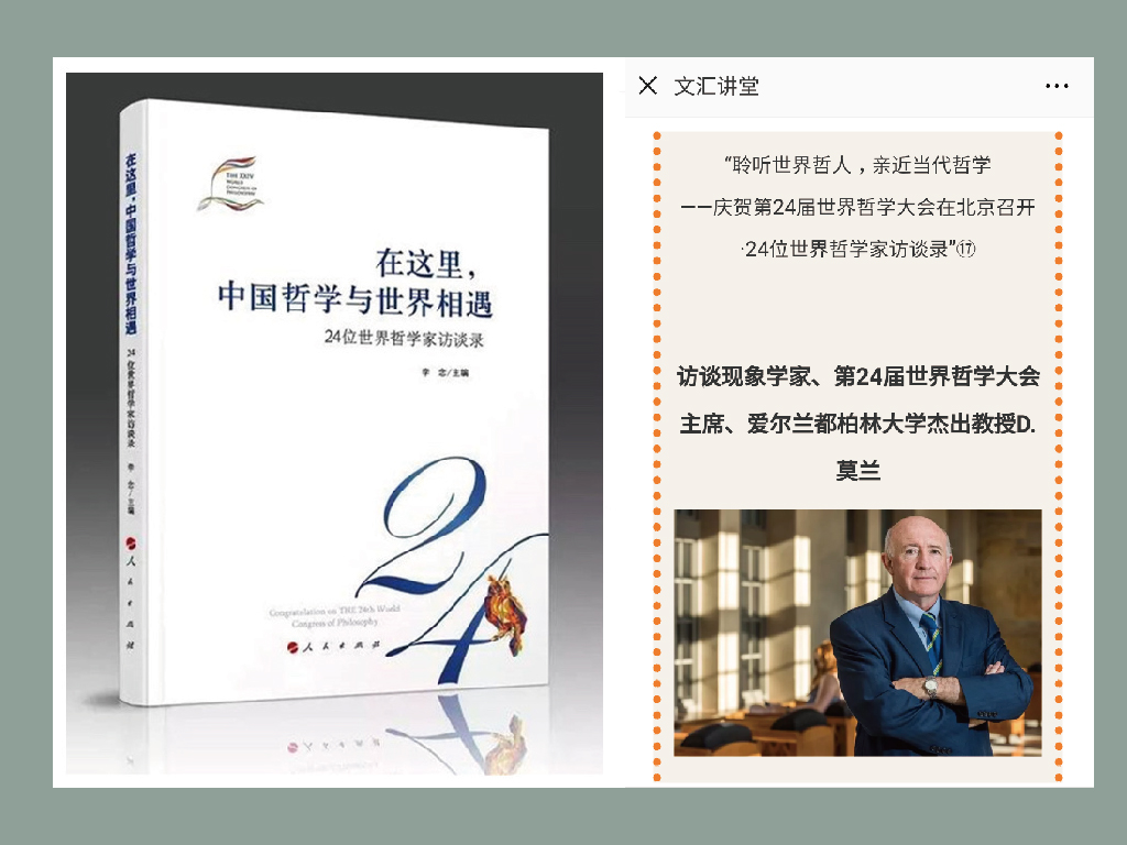 访谈更多详情请看文汇讲堂第五本专著《在这里,中国哲学与世界相遇——24位世界哲学家访谈录》人民出版社出版 2018年12月;文汇APP中2018年7月31日至8月25日系列访谈。