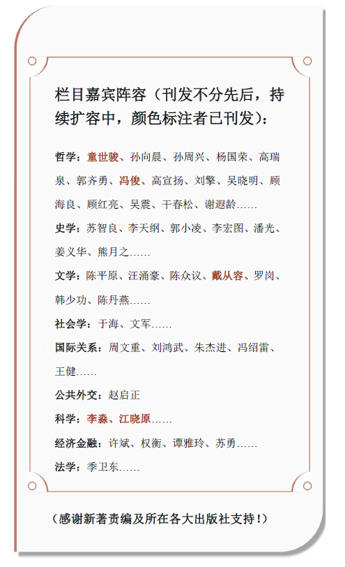 【栏口词】热点问题的学术解读平台——文汇讲堂至今已举办了134期,汇聚了270余名各界精英和学界领军人物。2019年的“嘉宾新著先睹”,摘编学者、嘉宾从2018年7月至2019年年底出版的新著、序、主编说,展示学者们最新研究成果,彰显新时代的文化自信和中国力量。栏目将从7月13日起至12月,每周2-3期。