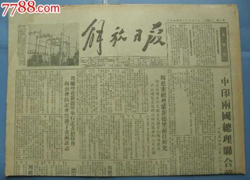 1954年6月,《解放日报》刊登了中印两国联合声明