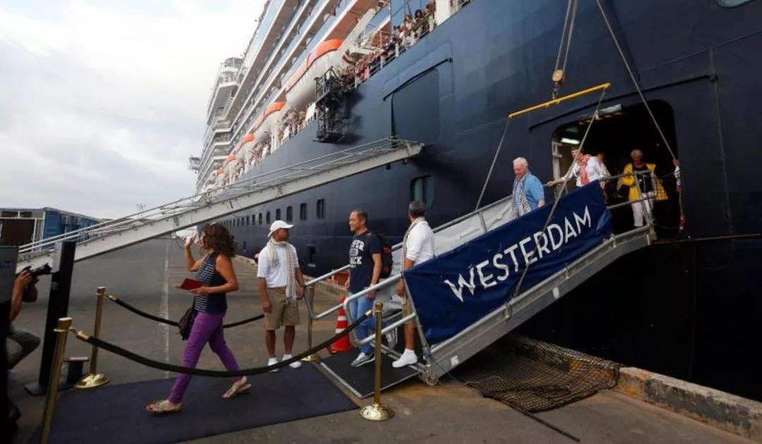 “威士特丹”号经过10天漂泊,5个港口拒绝停靠后,2月13日晚停靠在柬埔寨的西哈努克港