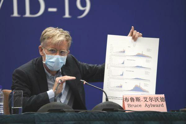 2月24日,世界卫生组织先遣组总干事高级顾问布鲁斯·艾尔沃德在北京举行的新闻发布会上讲话。(新华社)