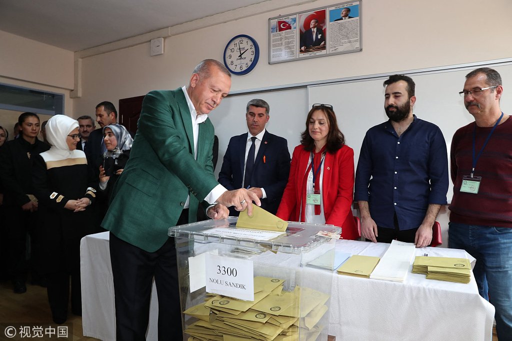 2019年3月31日,土耳其总统埃尔多安参加地方选举投票,此次选民约有5700万(图源:视觉中国)