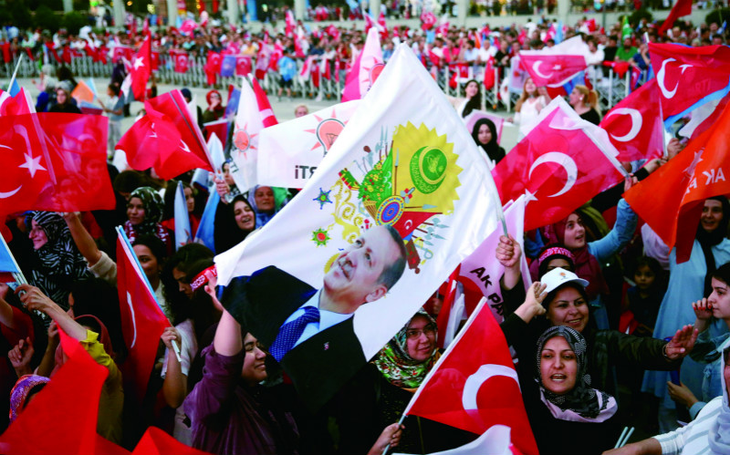 2018年6月,埃尔多安的支持者在土耳其首都安卡拉庆祝正发党在大选中获胜。(图源:法新社)