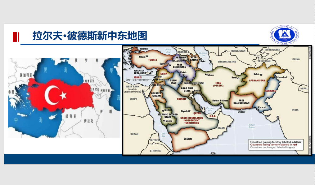 土耳其还认为,美国有一个秘密计划,就是支持库尔德人建立自己的国家。这张新中东地图在2006年的时候曾经在美国政府和北约的政策及军方圈子中普遍流传,它是由美国退休陆军中校、前美国国防部情报事务副参谋长彼德斯(Ralph Peters)所提出的,这份新中东地图显示,在原本土耳其与伊朗、伊拉克、叙利亚接壤的地方,冒出了一个新的“库尔德国”,美国意在在中东建“第二个以色列”!这是土耳其无论如何不能接受的。