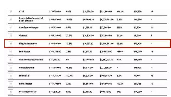 从一家单一产险公司发展成为中国三大综合金融集团之一,跻身于《财富》世界500强第29位,《福布斯》全球2000强第7位,市值及品牌价值居全球保险集团第一位。