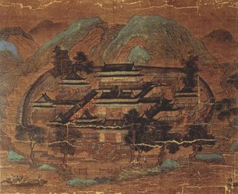 王维《辋川图》唐人摹本,收藏于日本圣福寺。王维隐居辋川别业期间,创作了许多出色的山水田园诗
