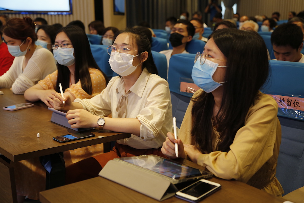面对石磊阐述的土地作为要素的流动,年轻听众用IPAD做听讲记录