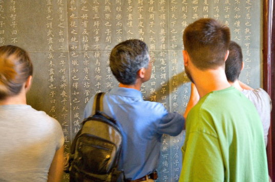 倪培民在上海文庙为他的美国学生讲解《论语》