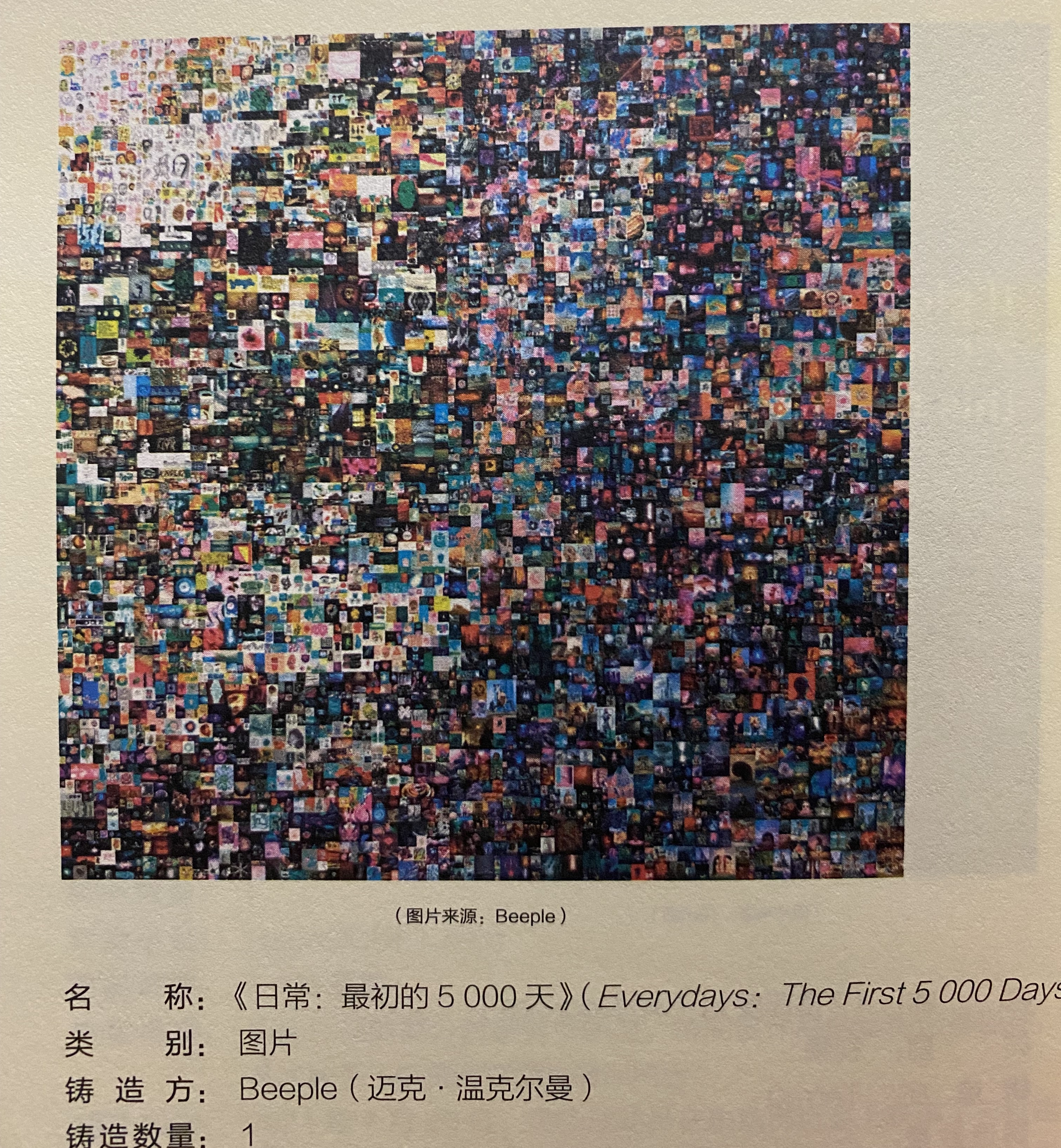 融合了5000件Beeple(迈克尔·温克尔曼)早期艺术作品的《日常》,截至2021年9月,这件作品成交价为6934万美元,成为成交价最高的NFT