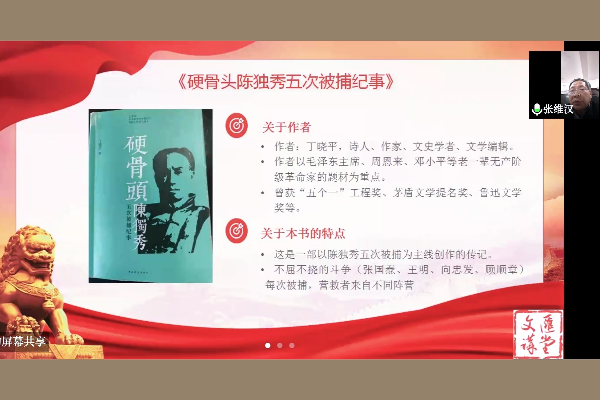 为何再读和分享陈独秀?50后制造企业董事长张维汉谈到,源自去年十九届六中全会第三个《决议》中关于陈独秀的评价的变化:“由于党内以陈独秀为代表的右倾思想发展为右倾机会主义错误,并在党内的领导机关占了统治地位……”其中提到“为代表”“错误”“占统治地位”都是实事求是的变化。他通读了五本陈独秀传记,分享丁晓平的《硬骨头:陈独秀五次被捕纪事》,试图还原一个更加立体真实的陈独秀,并窥见百年大党的生命力的历史演化。