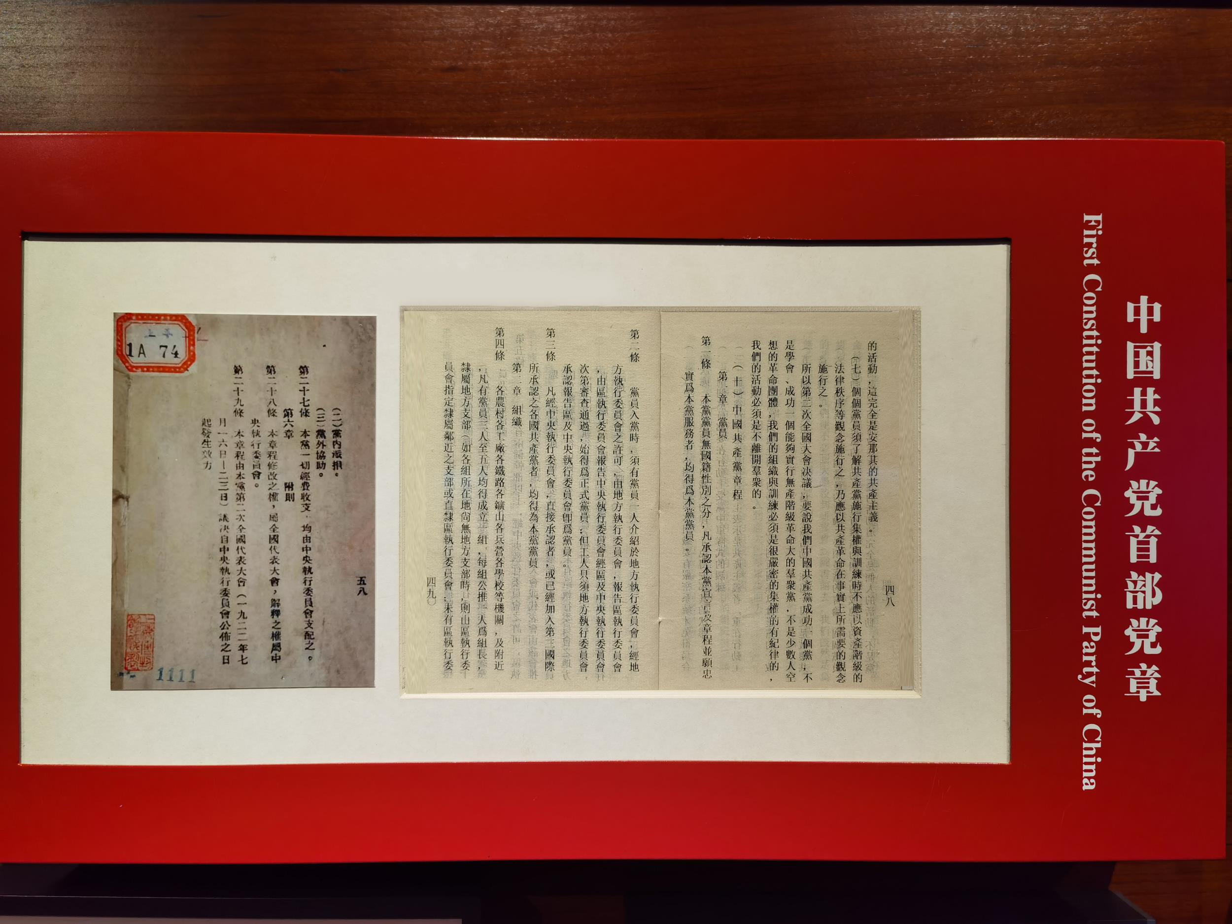 在中共二大会址纪念馆内的首部党章复印件 (二大会址纪念馆提供)