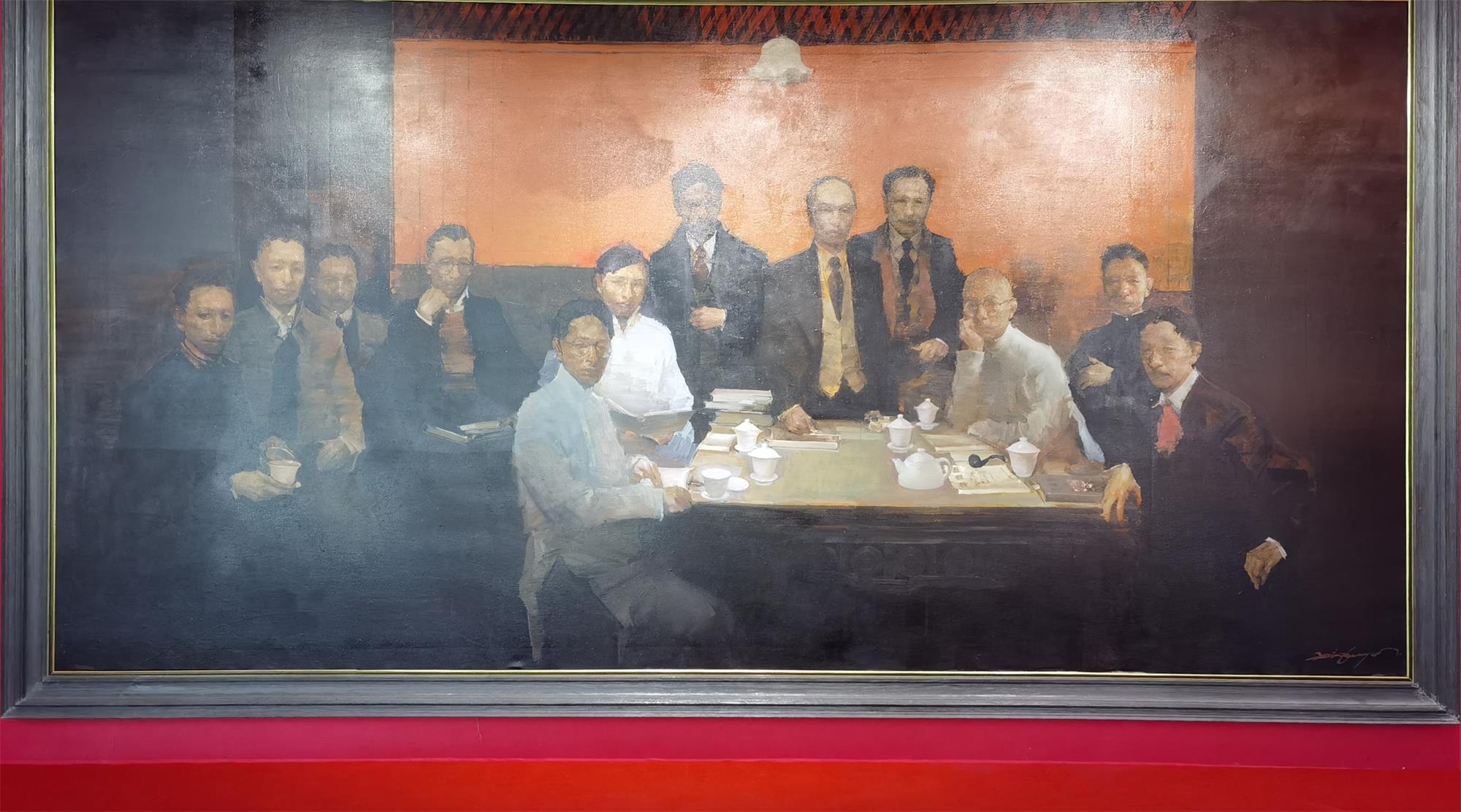 《中国共产党第二次全国代表大会第一次全体会议》油画:1922年7月16日,12位中共党员代表全国195名党员出席了中共二大 (二大会址纪念馆提供)
