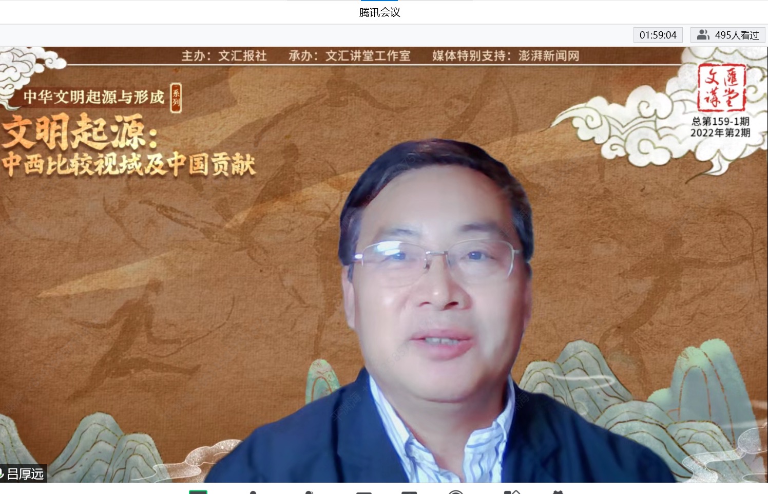 【导读】11月26日下午2-5点,由澎湃新闻网作为特别媒体支持的159-1期文汇讲堂如约举办,在三位嘉宾中国人大历史学院考古系陈胜前教授、中国社科院考古研究所史前考古室和世界考古室主任李新伟研究员、中科院地质与地球物理研究所吕厚远研究员带领下,近500名来自全国各地的听友相会腾讯网络会议研讨会度过了一个“解惑”的下午。三位学者分别从文明探源的世界维度、中华文明的标准探索、古气候和植物考古交叉学科助推中国贡献三个角度,描述了中华史前文明4000多年的概貌。凌家滩遗址管理局的丁燕等11位听友提问互动。
