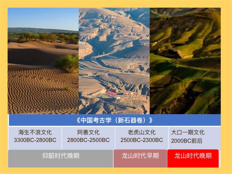 龙山晚期距今4300年至4000年,上排为陕北地貌包括沙漠、山地、黄土丘陵