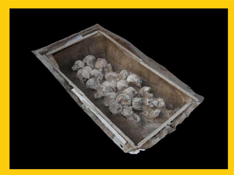 龙山时代早期,占卜现象开始流行。到了龙山时代晚期,形式更加复杂多样,宗教可能是已成为凝聚周围聚落的手段。在石峁外城东门的发掘中,发现有六处埋有人头骨的祭祀坑,这些祭祀坑均位于早期的地面之下或者是城墙的墙基下,应与城墙修建时的奠基或祭祀活动有关。其中最大的K2坑内发现有24具人头骨,经体质人类学鉴定,基本都是十几岁到二十几岁的年轻女性,部分头骨有明显的砍斫痕迹或创伤,个别枕骨和下颌部位有灼烧迹象。这种用人头祭祀的现象在商代也很常见,甲骨文记载有“斩人牲首”的方式。我们研究认为,石峁先民们修筑城墙,是为了构筑起强大的物质屏障,而用人头进行奠基活动,可能是建立精神屏障,为居住者提供精神上的安全保障。