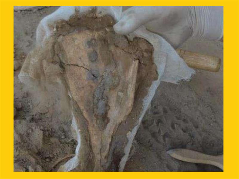 护坡石墙顶部集中出土了一二百件占卜用的卜骨