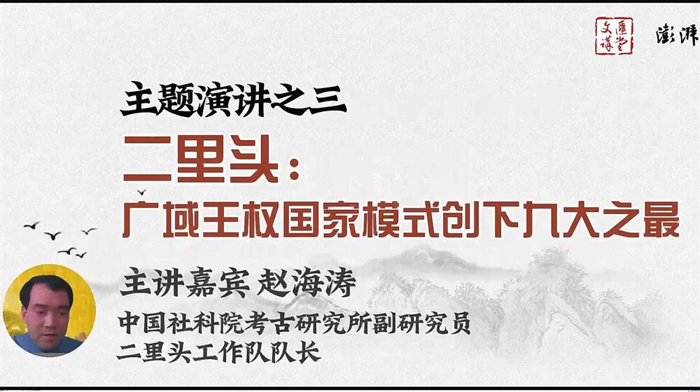 高江涛、邸楠、赵海涛三位学者共同主讲系列讲座之四——159-4《4000年前:中国的古国迈向王国》。在这段视频片段里,赵海涛详细论述了二里头创下的中国之最,以表明其文明具有引领性。