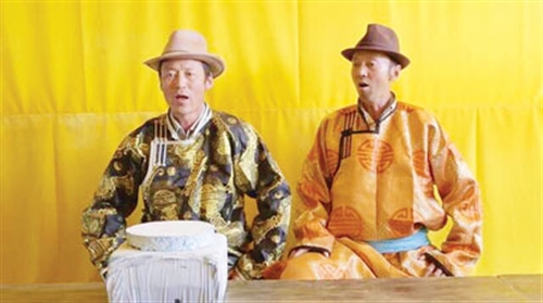 来自锡林郭勒盟阿巴嘎旗的两兄弟伊拉特与道仁图亚正在演唱“潮林道”。 杨涛摄