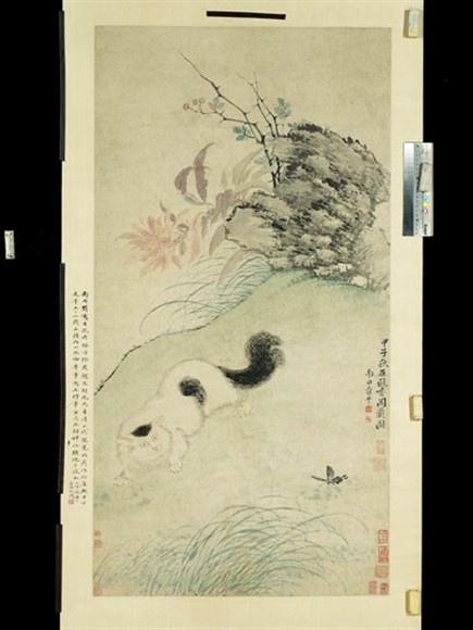 梅景书屋的收藏也显示出对某些特殊题材的偏好。梅花即是一例,从家传的《梅花喜神谱》、金俊明《群芳合璧图》册、汤叔雅《梅花双鹊图》轴,到日后藏得的邢慈静《梅花图》轴,吴湖帆夫妇二人“于梅花尤雅爱之”并以“梅花知己”自视之情怀不言而喻。另一题材则是猫,吴湖帆自言“夫人爱猫入骨,自小即如此”、“余夫妇有猫癖”,收藏过程中但凡遇上与猫相关的题材,出手毫不犹豫。梁代李霭之《子母猫》、元杜本《斗猫图》轴、元人《猫》轴、孙克弘《蕉荫猫蝶图》轴、清吴应贞《猫图》轴、恽寿平《秋猫扑蝶图》轴、沈铨《猫》轴、潘恭寿与藩岐父子《猫》对轴、李眉生与司马绣谷《猫》轴一对、童珏《猫》等,吴湖帆这一主题的藏品多达数十件,丰富程度几可办特展。还有徐悲鸿、汪亚尘、孙雪泥、朱梅村等画家索性挥毫画猫,或馈赠于吴湖帆,或由吴湖帆所订购。