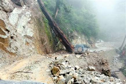 进独龙江的路上,随处可见倒下的大树、遍地的石块。 许亢摄