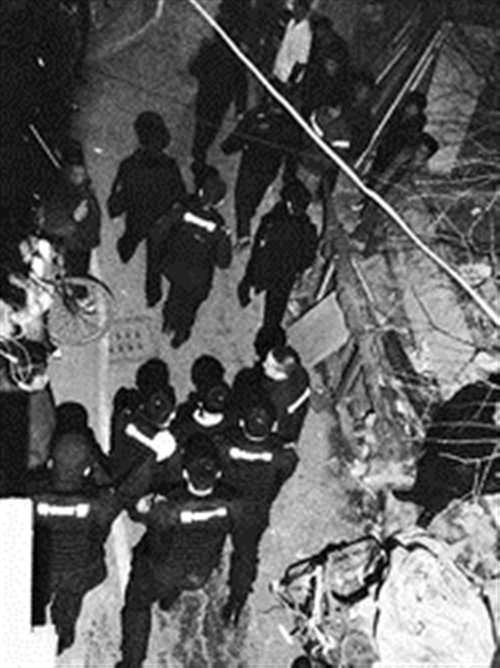 昨晚,警方经过10小时努力解救了女童。图为相关人员被带离现场。 文汇报记者 何易摄