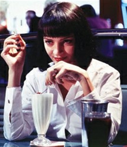 这是昆汀·塔伦蒂诺1994年的作品。危机四伏之中,过了气的“热舞王子”约翰·屈伏塔再度出山,和乌玛·瑟曼大跳扭腰舞,暧昧妖艳,被奉为1990年代最经典的镜头。镜头里两位影星衣着简单,每个细节都充斥着一股美国黑帮式的酷劲,那些蓬松的卷发、冶艳的妆容、尖跟船型高跟鞋、大气硬朗的尼质女大衣,还有黑装配仔裤……身穿白色衬衫和黑色九分微喇裤的乌玛·瑟曼体现出1990年代简洁中性风格的时髦范儿。