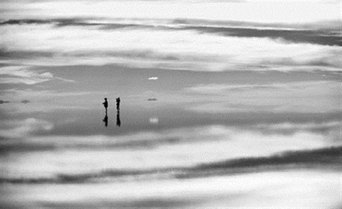 美国摄影师Michael Kittell和妻子Taylor环球旅行来到玻利维亚的乌尤尼盐沼。这是一片地表被几厘米深的水面覆盖的广阔平原,没有风,天空和云彩的景象完美地倒映在水面上。