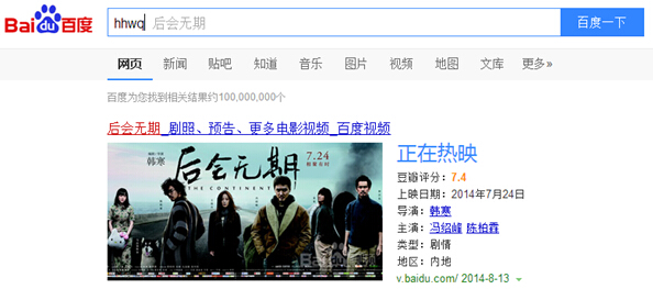 网友如想搜索“爸爸去哪儿”,只需在搜索框中输入“爸爸”,百度便会预估个性化搜索需求,以灰色字体“猜”出网友想要的搜索结果,即时显现内容。即便网友的输入很模糊,只有几个字符“hhwq”,智能预测也会快速转化成关键词“后会无期”,进行页面展现,真正做到“先知”。