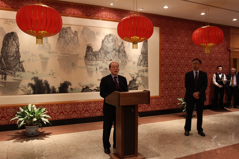 当地时间12日晚,中国常驻联合国代表团举办2015年国际职员新春招待会。中国常驻联合国代表刘结一在招待会上发表讲话。